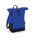 600D polyester. Padded adjustable shoulder straps. Compression straps. Roll-top closure. Padded back panel. Padded laptop compartment. Internal zip valuables pocket. Easy access side pockets. Laptop compatible up to 17". Tear out label. Capacity 22 litres.
