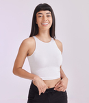 93% cotton/7% elastane. Single jersey. Racer front and back neckline. Cropped length. Twin needle stitching. Tear out label.