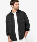 100% organic combed cotton. Brushed back fleece. Washed effect. Regular fit. Collar stand. Herringbone taped neck. Contrast recycled plastic horn effect buttons. Back yoke. Two chest pockets with flap and button closure. Single button cuffs. Straight hem. Twin needle hem. Tag free. Garment dyed after assembly, colours may vary slightly. The colour may rub off on contact with light surfaces or clothing.