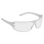Extremely lightweight safety spectacles, weighing only 17grams. Thin temples for pressure-free all-day wearing comfort. Single piece wrap-around lens with moulded nose bridge. Metal free.